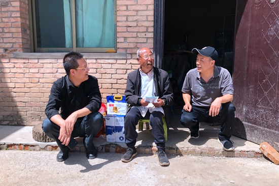 在公司驻村扶贫干部刘杰老师的陪同下,谈建勤一行携生活物资先后走访了肖和平、薛忠孝两家帮扶结对户。在帮扶对象肖和平家,谈建勤询问了肖和平病情恢复状况,详细了解了疫情发生以来的生活情况、收入来源及目前存在的困难。得知肖和平今年有搞养殖的打算,大家纷纷鼓励他,给他出主意,分析利弊,刘杰老师还给他讲解了国家帮扶政策,表示会给予支持帮助。见到了因疫情还未返校的肖和平的女儿,大家详细询问了孩子的学习情况,鼓励孩子刻苦用心学习,照顾好自己,让家长放心。在五保户薛忠孝老人家里,大家陪着老人晒着暖阳聊天,询问老人还有什么困难,乐观的薛忠孝老人表示国家政策好,公司帮扶很尽心,他很满意,现在生活很幸福。看到老人一直生着炉子做饭,大家反复叮嘱老人保持房间透气,注意烧煤安全。