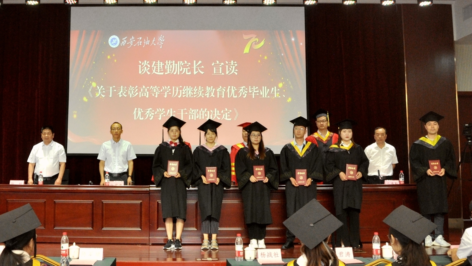 7月10日上午,公司高等学历继续教育2021年学士学位授予仪式在明德校区明德楼报告厅隆重举行。副董事长杨战社,副董事长、校学评定位委员会副主席陈军斌,校学位评定委员会委员、教务处处长张君涛,石油工程公司副经理赵金省教授出席学位授予仪式。公司党总支书记耿岭主持授位仪式。2021年获得学位及因疫情原因未举办授位仪式的2020年获得学位的共36名员工代表参加授位仪式。
