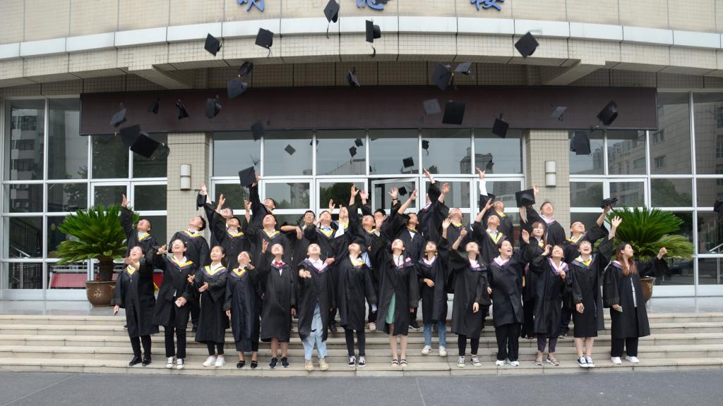 学士学位授予仪式在庄严的校歌《辉煌明天》的音乐声中圆满拉上帷幕。与会领导和导师与全体员工在明德楼前合影留念。