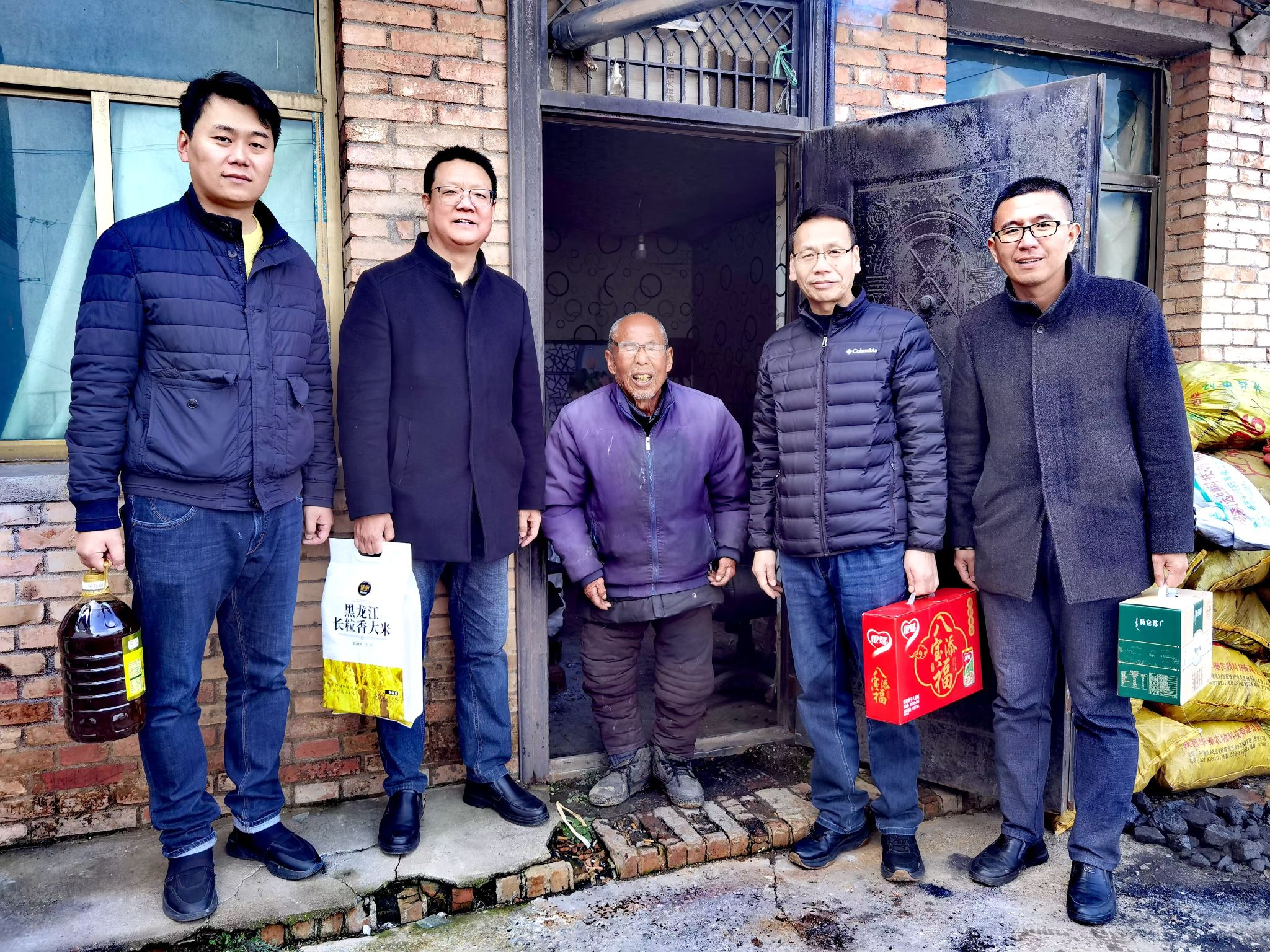 大家首先来到结对户肖和平家中,其常年身患疾病,无法从事重体力劳动,生活十分艰难。大家送上慰问物质,并攀谈其近来身体状况、用药消费、困难补助等情况。随后,来到结对五保户薛忠孝家,其年事已高,身体状况不佳,独自生活,仅靠低保维持生计。大家将慰问物资搬进屋里,并详细询问他的身体状况、日常饮食起居及冬季取暖情况。薛忠孝激动地说道:“感谢党和政府的关心,感谢大家还惦记着我们这些困难的人。”大家安慰并鼓励他要保持乐观的心态,注意身体,有什么困难随时向驻村干部反映。