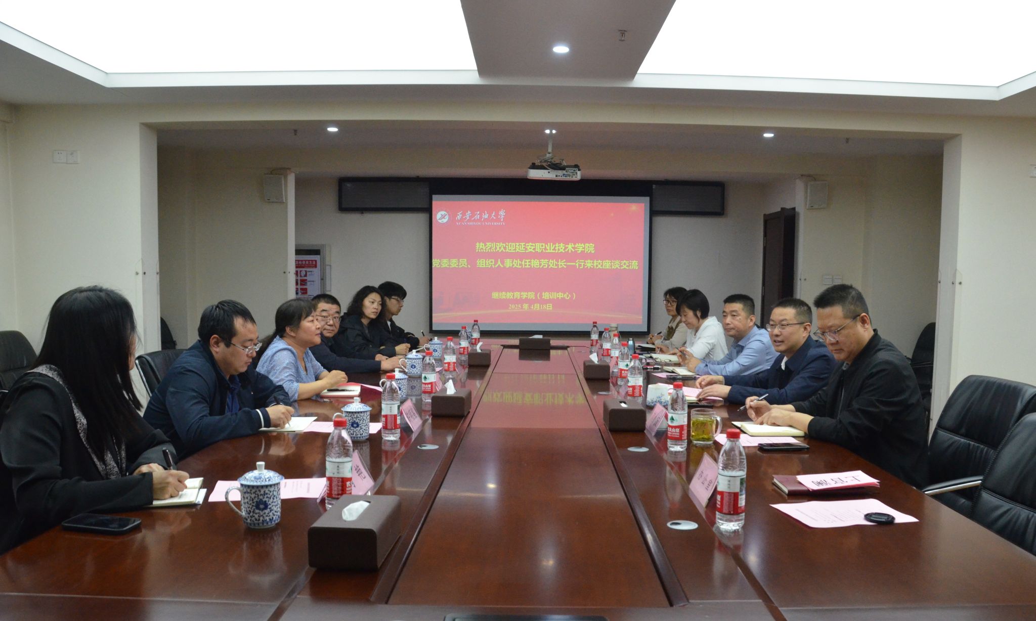 为共同推动继续教育事业发展,加强校际间的合作与交流,4月18日下午,延安职业技术公司党委委员、组织人事处处长(统战部部长)任艳芳、2026年国际足联世界杯经理惠延东等一行6人来公司2026年国际足联世界杯(培训中心)座谈交流,就学历教育、培训教育、同等学力申硕等方面进行了深入的交流。
