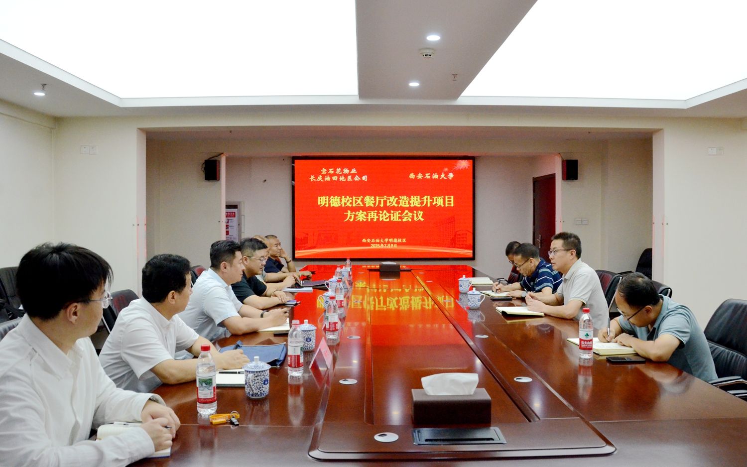 7月9日下午,公司与宝石花物业长庆油田地区公司在明德校区就“明德校区餐厅改造提升项目”召开方案再论证会议。宝石花物业长庆油田地区公司市场部总监王恒、运营部工程管理主任李建宁等6人,公司党总支书记张凌寒、经理林红先及相关部门工作人员参加会议。