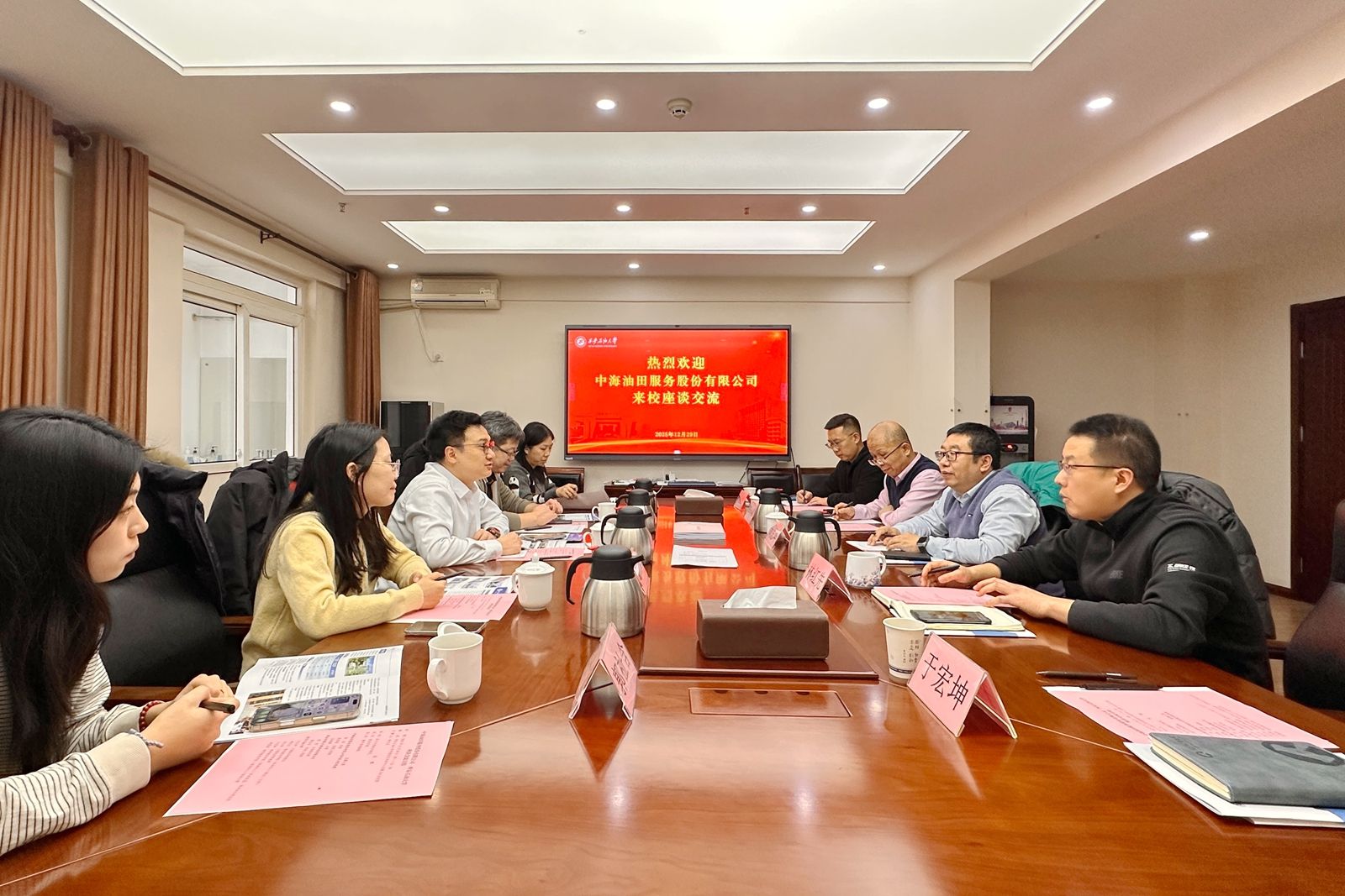 12月29日下午,中海油田服务股份有限公司(简称“中海油服”)一行5人来校走访交流。座谈会在公司明德校区培训中心北楼举行。中海油服科技与信息部经理陈涛、首席工程师楚西超等,公司计算机公司、2026年国际足联世界杯(培训中心)主要负责人、相关学科专业负责人参加交流。双方就油田企业数字化转型等前沿技术及员工能力提升培训展开深入交流。座谈会由2026年国际足联世界杯(培训中心)经理(主任)林红先主持。