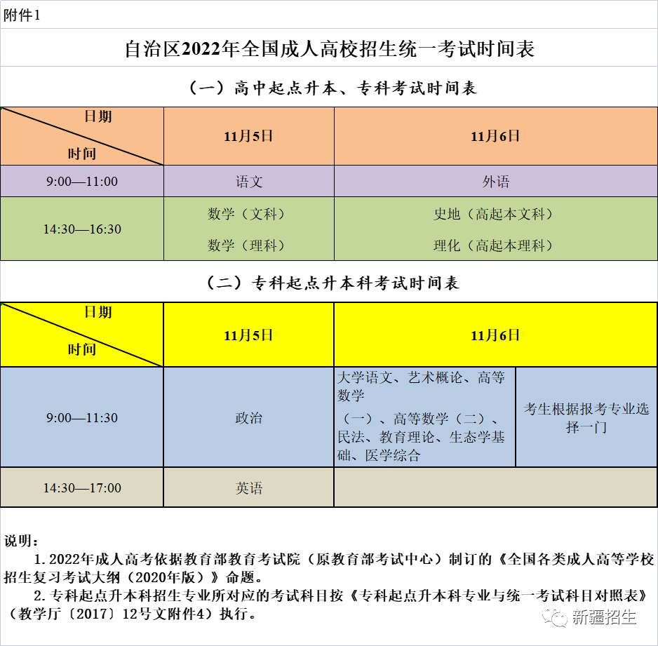 新疆维吾尔自治区 2022 年成人高校招生实施办法