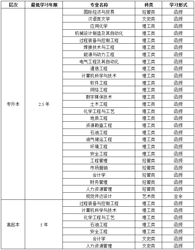 集团举办学历继续教育以来,依托石油石化背景的学科优势,构建了以石油石化专业为主、通用专业为辅的专业体系,形成了理、工、文、管、艺多科的专业格局,鲜明的办学特色在石油石化行业和广大地区享有较高声誉。