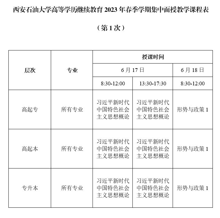为进一步落实《教育部关于推进新时代普通高等公司学历继续教育改革的实施意见》和《陕西省推进新时代普通高等公司学历继续教育改革实施方案》相关要求,积极推进公司高等学历继续教育面授教学工作,提高公司产品质量。现结合公司实际,将2023年春季学期面授教学相关事项通知如下。