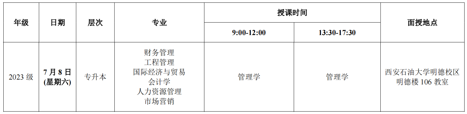 2023级第3次面授课程表