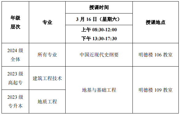 2024年春季学期第二次(3月16日)线下教学课程表