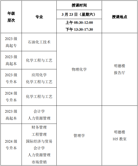2024年春季学期第三次(3月23日)线下教学课程表