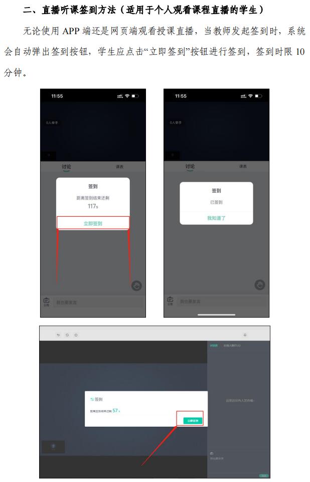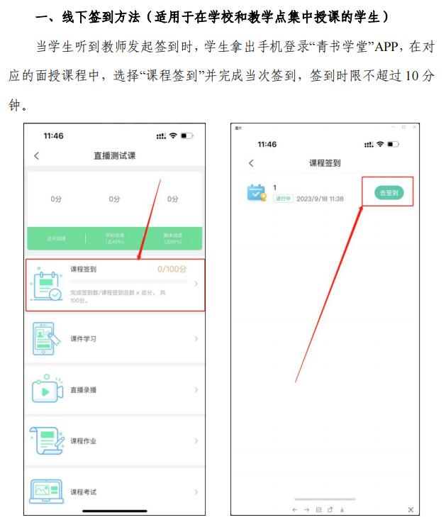 无论线下教学还是直播教学,授课期间,员工都应根据教师提示通过“青书学堂”APP进行课程签到,签到方法见附件2,签到情况将纳入平时成绩。