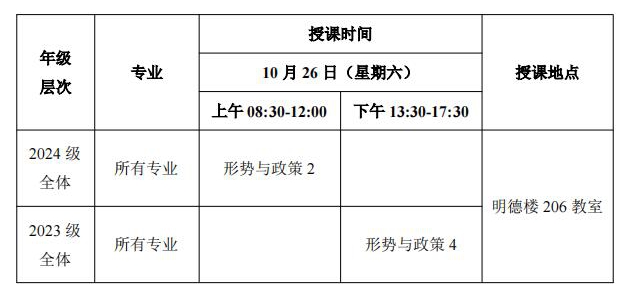 2024年秋季学期第二次(10月26日)线下教学课程表