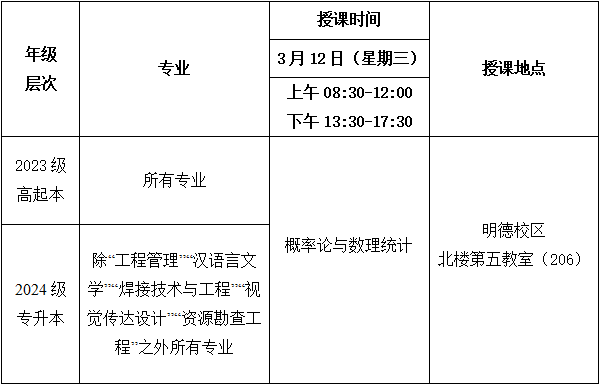 2025年春季学期第二次(3月12日)线下教学课程表