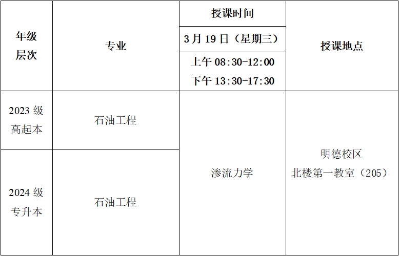 2025年春季学期第三次(3月19日)线下教学课程表