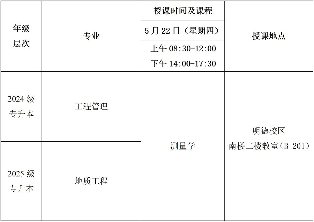 2025年春季学期第十一次(5月22日)线下教学课程表
