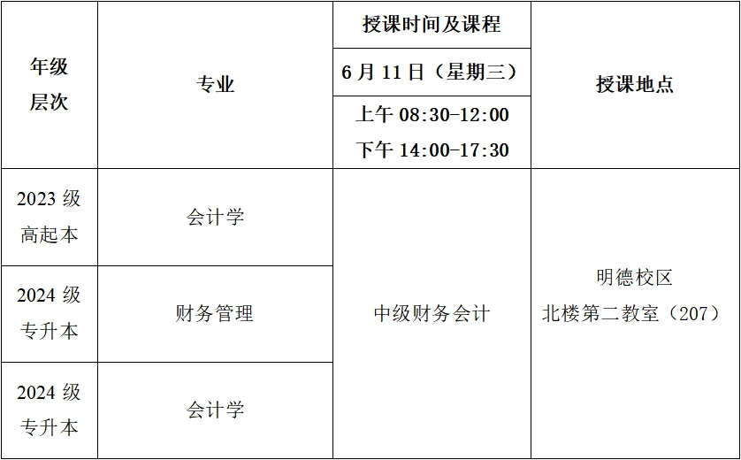 2025年春季学期第十四次(6月11日)线下教学课程表