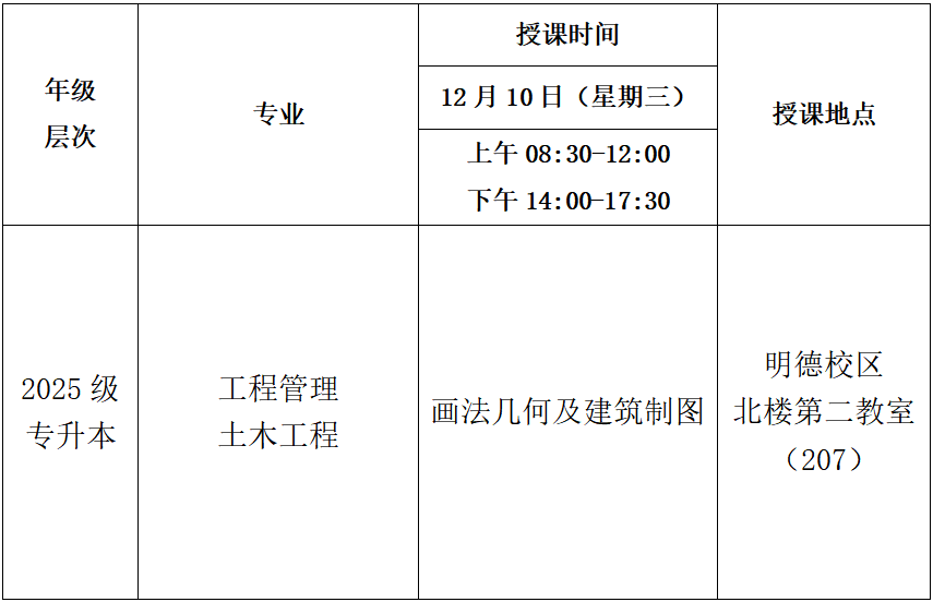2025年秋季学期第十次(12月10日)线下教学课程表