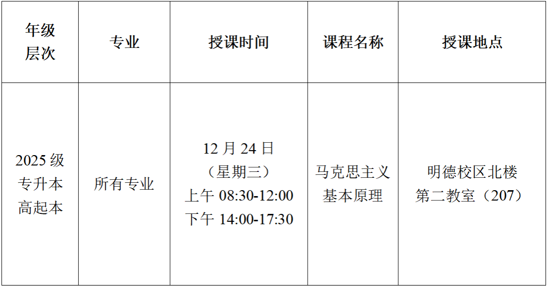 2025年秋季学期第十二次(12月24日)线下教学课程表