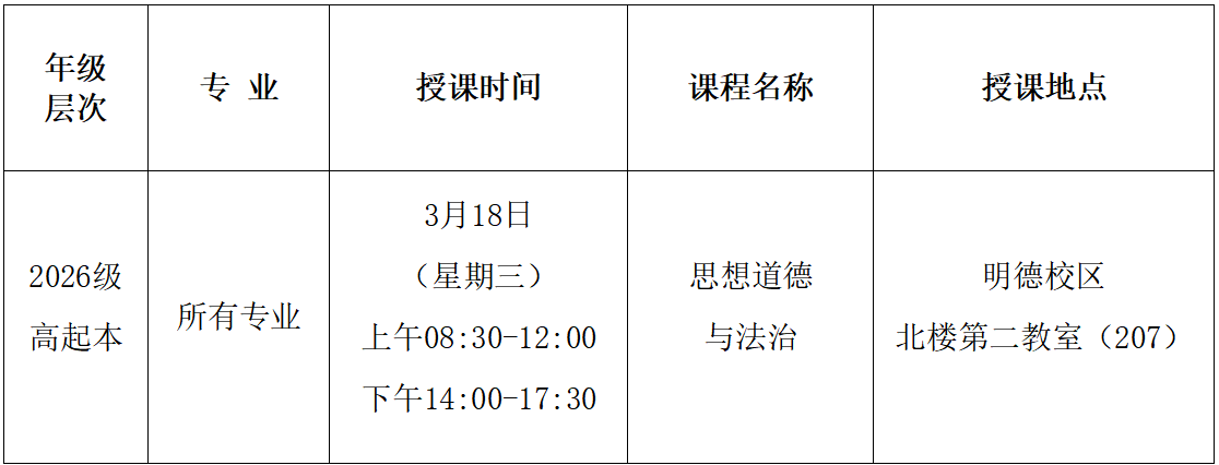 2026年春季学期第二次(3月18日)线下教学课程表