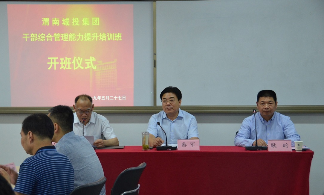 为进一步提高干部的综合能力,为集团打造一支高素质人才队伍,按照集团2019年重点工作要求,“渭南城投集团干部综合管理能力提升培训班”于5月27日上午在公司培训中心顺利开班。渭南城投集团党委副书记、总经理蔡军,公司公司党总支书记耿岭以及来自集团和下属二级单位的32名参训领导参加开班仪式。