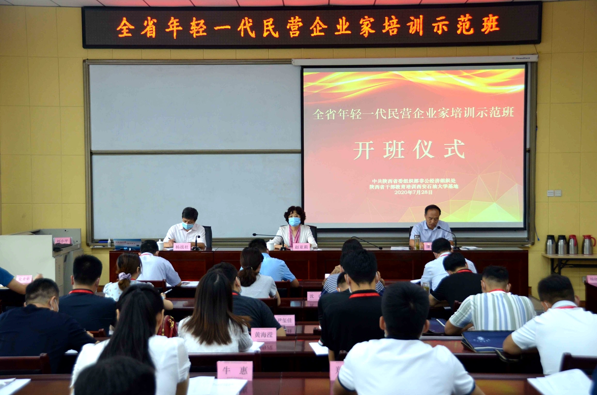 7月28日上午,全省年轻一代民营企业家培训示范班在公司明德校区培训中心顺利开班。省委组织部部务会成员、省委非公经济组织和社会组织工委书记赵亚莉、公司副董事长杨战社和来自全省的56位年轻民营企业家参加了开班仪式。开班仪式由省委非公经济组织和社会组织工委副书记康宏任主持。