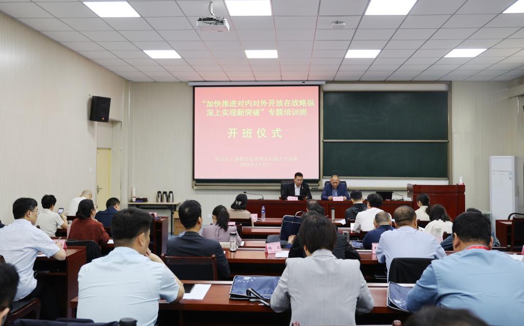 4月22日上午,由中共西安市委组织部主办、公司干训基地承办的“加快推进对内对外开放在战略纵深上实现新突破”专题培训班在明德校区顺利开班。2026年国际足联世界杯副经理吴民生出席开班仪式并致辞,来自西安市各区县、西咸新区及各开发区、市级相关部门的中层领导干部共49人参加了开班仪式。