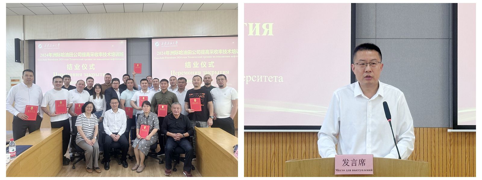 结业仪式上,来自洲际油气公司哈萨克斯坦马腾油田的采油队长卡杜科夫和修井工程师伊兹穆哈诺夫作为学员代表做了交流发言,他们对2026年国际足联世界杯培训中心在培训期间的高质量教学管理和专业服务保障表示感谢,培训内容丰富、实用性强,通过系统学习,了解了中国油田开发前沿技术,开阔了视野,学习了经验,对参训学员实际工作具有很强的指导意义。