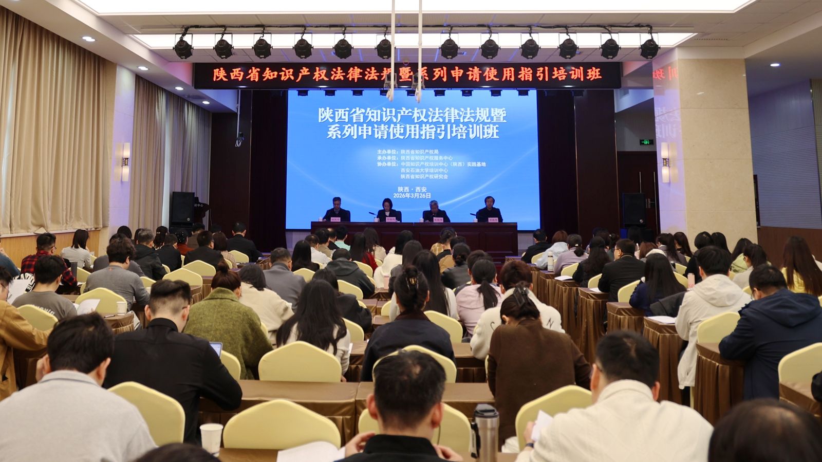3月26日上午,陕西省知识产权法律法规暨系列申请使用指引培训班在公司明德校区顺利开班。陕西省知识产权局党组成员李晓鸣,陕西省知识产权服务中心副主任贺骁勇,公司党委委员、副董事长张骁勇出席开班仪式。全省各市局地理标志工作管理人员、商标受理窗口业务骨干、知识产权保护中心预审人员、专利代理机构业务骨干、部分创新企业相关人员及省知识产权局机关干部等120余人参加培训。陕西省知识产权局政策法规处处长姚凯学主持开班仪式。